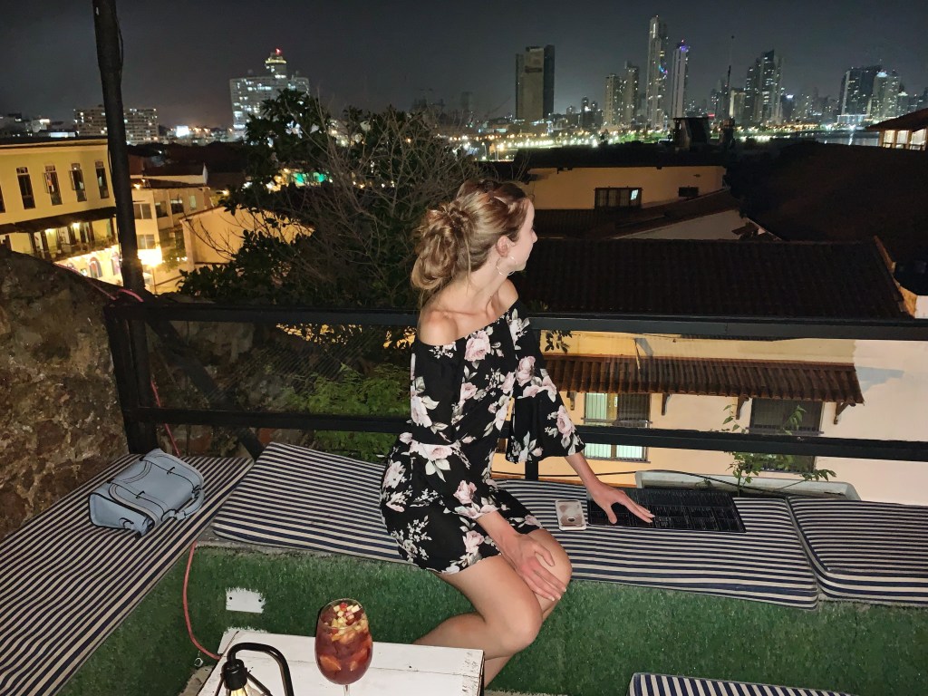 Amy (me) overlooking the city on top of Gatto Blanco first night in PTY.
